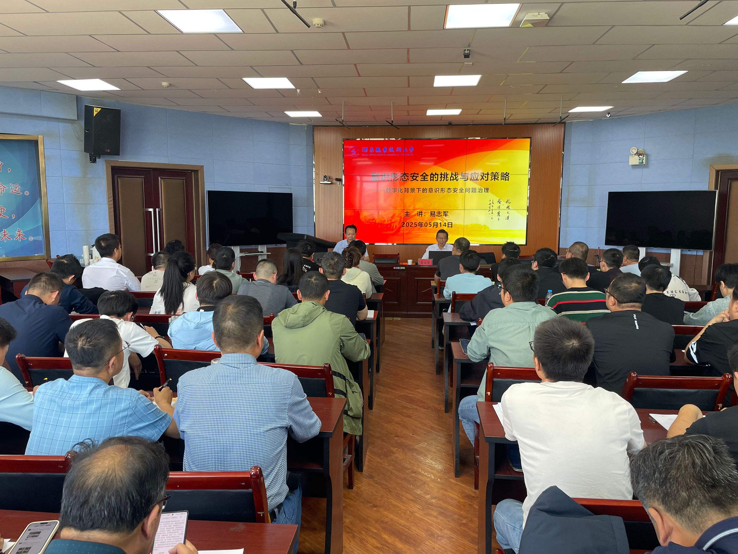 5月14日下午,学校党委书记易志军教授在经世楼2楼录播室讲授意识形态安全专题党课。甘肃省税务局电讯线网络攻防培训班学员及电子与信息工程学院党支部、经济管理学院党支部党员聆听了党课。