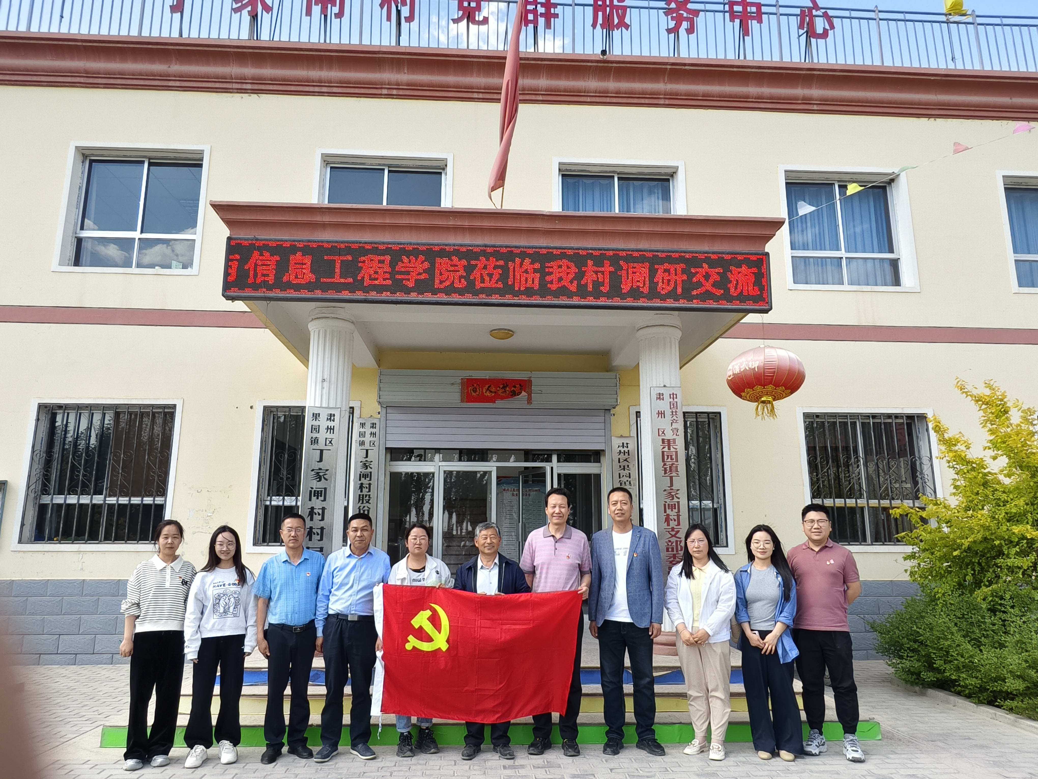 电子与信息工程学院党支部党员参观了丁家闸村委会党支部党建阵地。随后,双方围绕乡村振兴项目开展座谈交流。村委会书记介绍了丁家闸村党建、农业生产、文物保护、办公数字化等方面情况。