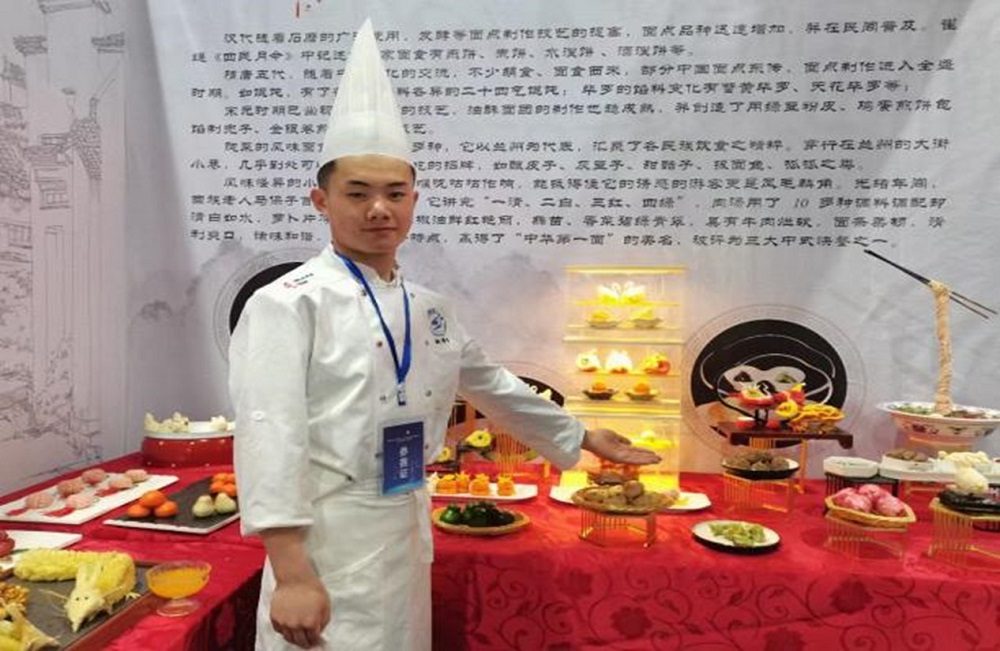权伟伟老师在酒职大烹饪工艺与营养专业求学期间就对中国传统面塑技艺产生浓厚的兴趣。课堂上,他全神贯注聆听老师讲解每一个技法要点。课后,他沉浸在作品创作过程中,毕业后他更是将中国面塑这一非遗传统技艺与传统中国文化相结合,创作出一件件精美作品,这份执着与努力,让他在各类技能竞赛中崭露头角,收获诸多荣誉。