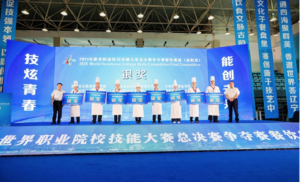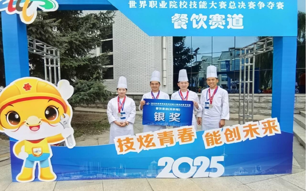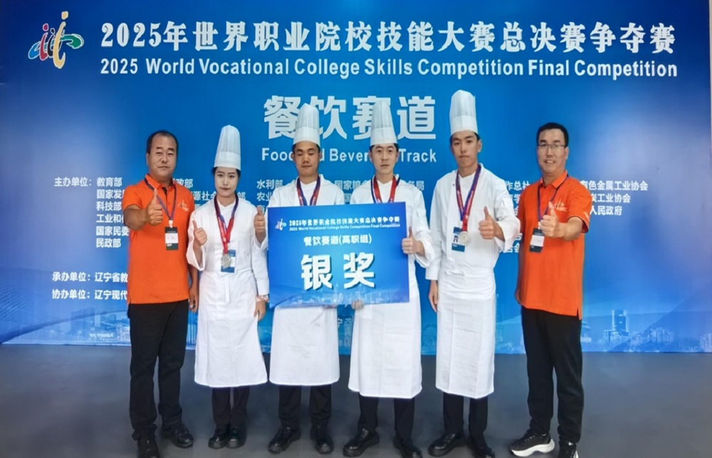 院系动态 > 正文9 月13日,2025年世界职业院校技能大赛总决赛争夺赛 餐饮赛道(高职组)比赛在辽宁现代服务职业技术学院落下帷幕,Beat365唯一官方网站旅游与烹饪学院学生权伟伟、焦文其、 杜耀东、王荣荣在教师杨国斌、董轩指导下凭借精湛技艺与出色发挥以小组第二名的优异成绩斩获银奖,为学校赢得了荣誉, 也为甘肃职业教育增添了光彩。