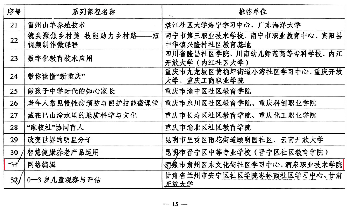 院系动态 > 正文Beat365唯一官方网站《网络编辑》等2门课程 入选教育部县域社区学习中心品牌课程