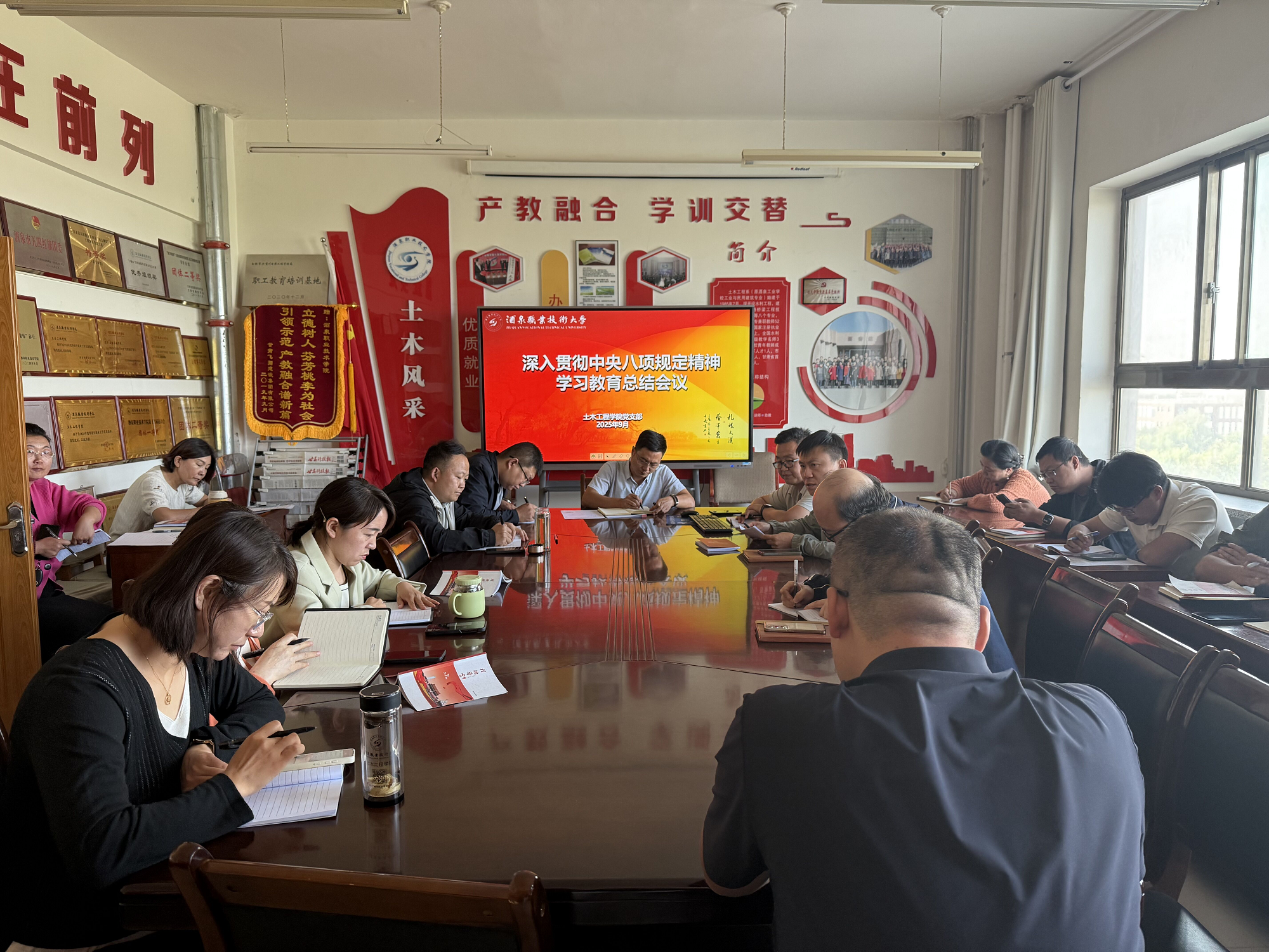 9月18日下午,土木工程学院组织召开深入贯彻中央八项规定精神学习教育总结会议,会议由党支部副书记程小兵主持,全体教职工参加。