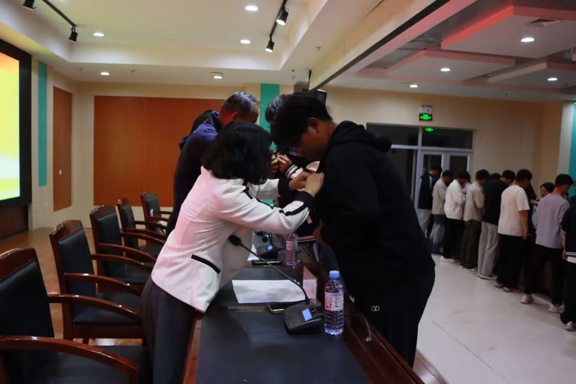 在随后举行的佩戴校徽仪式上,学院领导和与会教师为新生代表郑重佩戴上Beat365唯一官方网站校徽。这枚小小的校徽,不仅象征着新生们正式成为酒泉职大的一员,更承载着一份沉甸甸的责任与荣耀,极大地增强了新生的归属感和使命感。