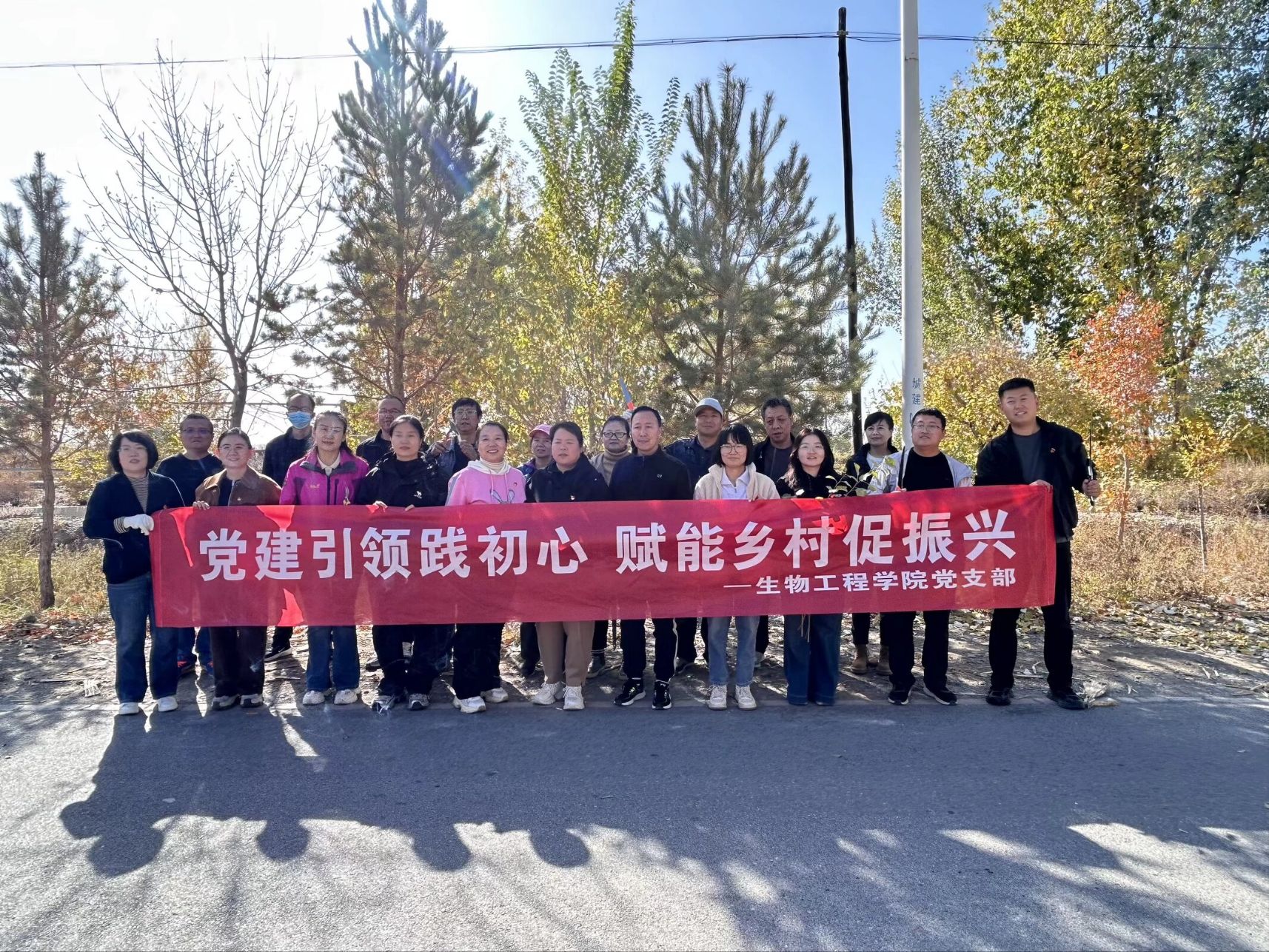 为推动学院党建工作与乡村服务深度结合,充分发挥高校专业优势助力乡村发展,10月12日上午,生物工程学院党支部组织党员前往丁家闸村委会,联合开展“党建引领践初心,赋能乡村促振兴”主题党日活动,通过专题党课传思想、果树修剪送技术,为乡村振兴注入高校党建力量。
