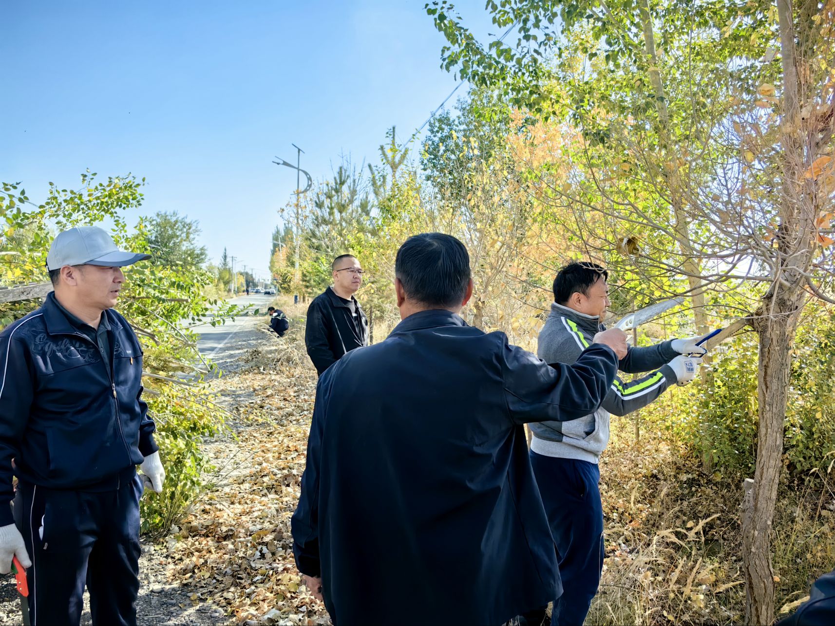 理论学习结束后,双方党员共同前往丁家闸村果树种植园,开展果树修剪主题实践活动。学院党员教师化身“技术指导员”,现场示范修剪操作:从判断病弱枝、交叉枝的修剪要点,到根据果树品种调整修剪角度,逐一讲解关键技术。