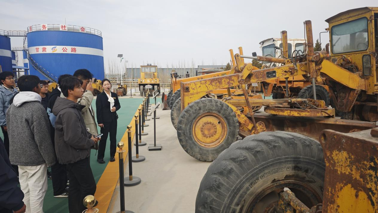 在甘肃公路博物馆,同学们通过室内展区丰富的实物模型、历史文献与数字化互动装置,系统了解了甘肃地区从古丝绸之路交通驿道到现代智慧公路的演进历程,重点学习了道路材料演变、桥梁结构类型与施工工艺发展等专业知识。随后在户外展区,各类施工机械的实体展示生动呈现了筑路设备从机械化到智能化的发展轨迹,使同学们对现代公路施工的技术装备有了直观认识。在酒泉公路事业发展中心试验检测室,精密的路基检测仪器、材料性能测试设备及规范化的操作流程,让同学们深刻体会到工程质量控制在公路建设中的关键作用,进一步理解了“标准引领、数据支撑”的行业质量管理理念。