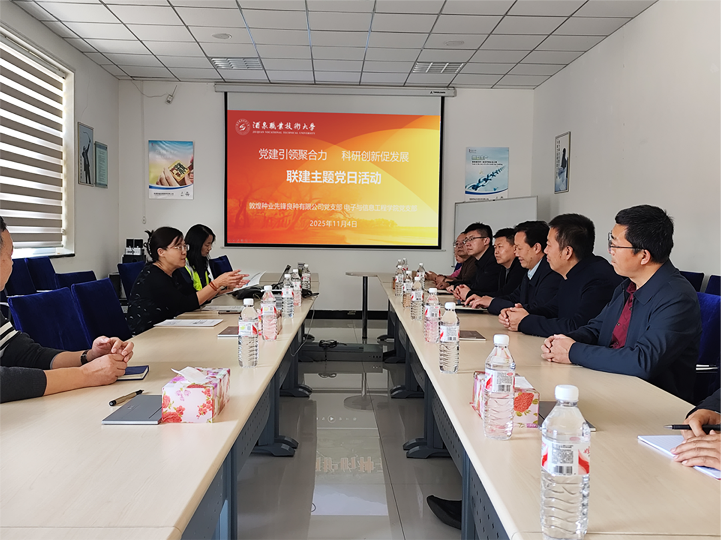11月4日,电子与信息工程学院党支部和敦煌种业先锋良种有限公司党支部开展“党建引领聚合力 科研创新促发展”主题党日活动。
