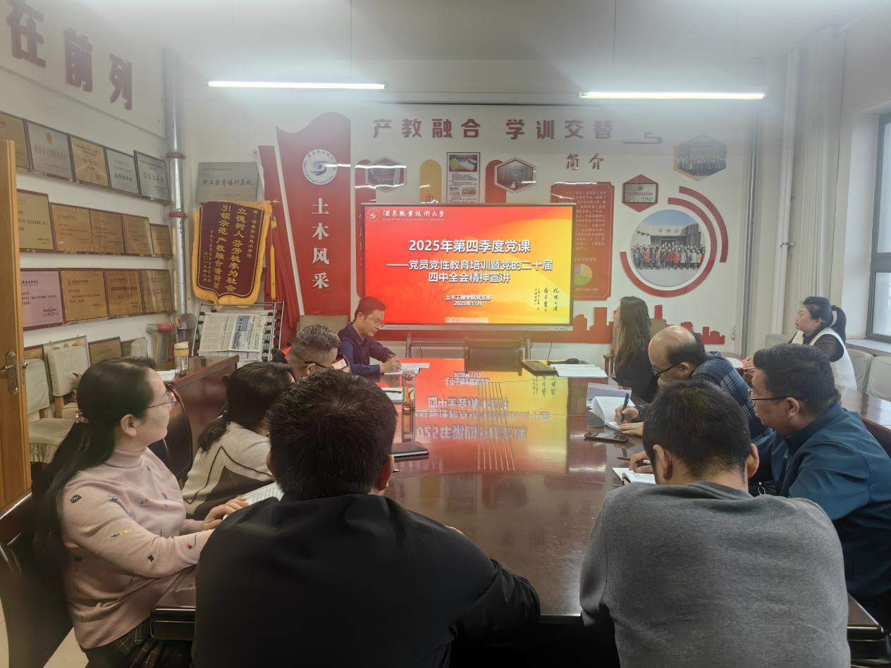 院系动态 > 正文为深入学习贯彻党的二十届四中全会精神,引导全体党员教师深刻把握习近平新时代中国特色社会主义思想的核心要义,准确理解党中央最新战略部署,牢固树立正确党史观,11月13日下午,土木工程学院特邀马克思主义学院三位老师开展联合专题理论宣讲。学院全体党员教师参加本次学习。