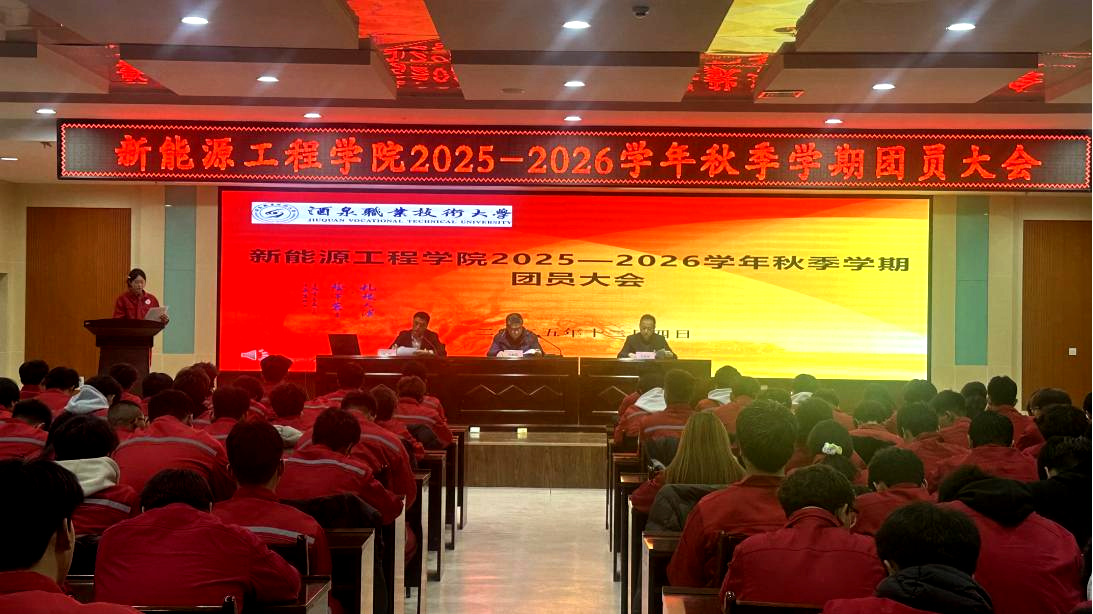 2025年12月4日晚,在学校图书馆四楼多功能厅新能源工程学院团员大会顺利召开。新能源工程学院党支部书记许新兵、副院长张振伟出席会议,全院420余名团员参会,大会由学院团委书记张昭主持。