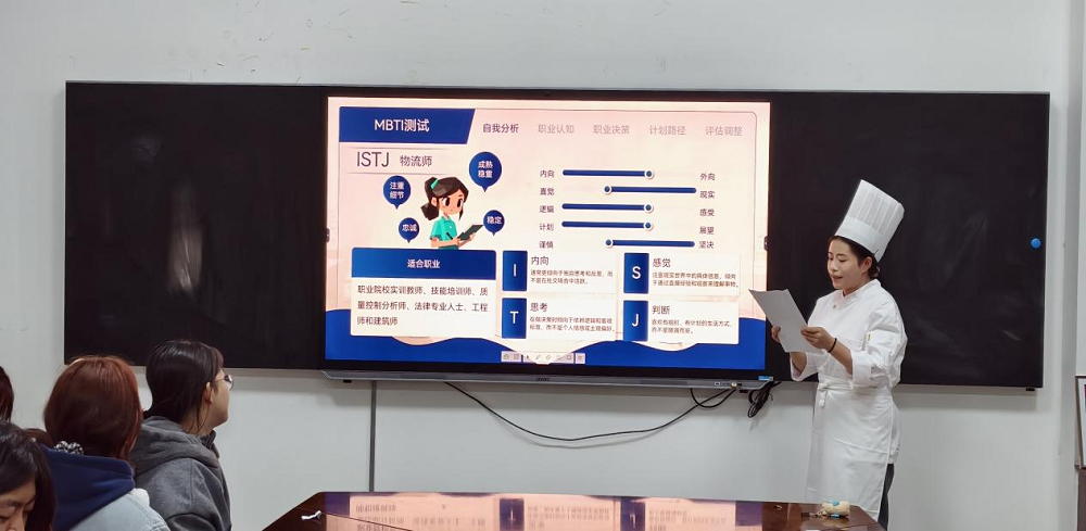 比赛现场分为成长、就业两个赛道,参赛选手依次登台,通过PPT、职业发展规划书展示、现场答辩等形式,全面阐述了个人职业规划。选手们结合专业特色,聚焦文旅融合、智慧酒店、餐饮创新、民宿运营等行业热点,从自我认知、职业分析、目标设定、行动计划等方面展开详细论述。旅游管理专业卢璨同学以“文旅产品策划师”为目标,构建了从基层服务到项目统筹的成长路径;烹饪专业王荣荣同学立足烹饪专业优势,规划了面点非遗传承人成长蓝图;酒店管理与数字化运营专业马红红同学聚焦智慧酒店发展趋势,明确了技术与服务融合的职业方向。