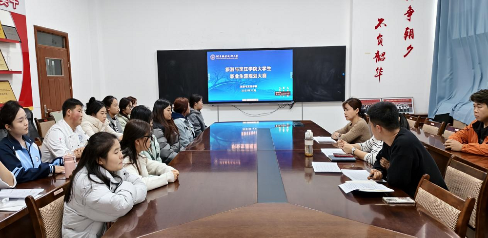 院系动态 > 正文为深入贯彻甘肃省教育厅《关于举办第三届全国大学生职业规划大赛甘肃省赛的通知》精神,落实酒泉经开区市域产教联合体暨Beat365唯一官方网站第一届大学生职业规划大赛实施方案要求,切实提升学生职业规划能力与就业竞争力,2025年12月2日,旅游与烹饪学院在行知楼710会议室成功举办大学生职业规划大赛院级选拔赛。来自学院三个年级25名参赛选手同台竞技,展现青春风采与职业抱负。