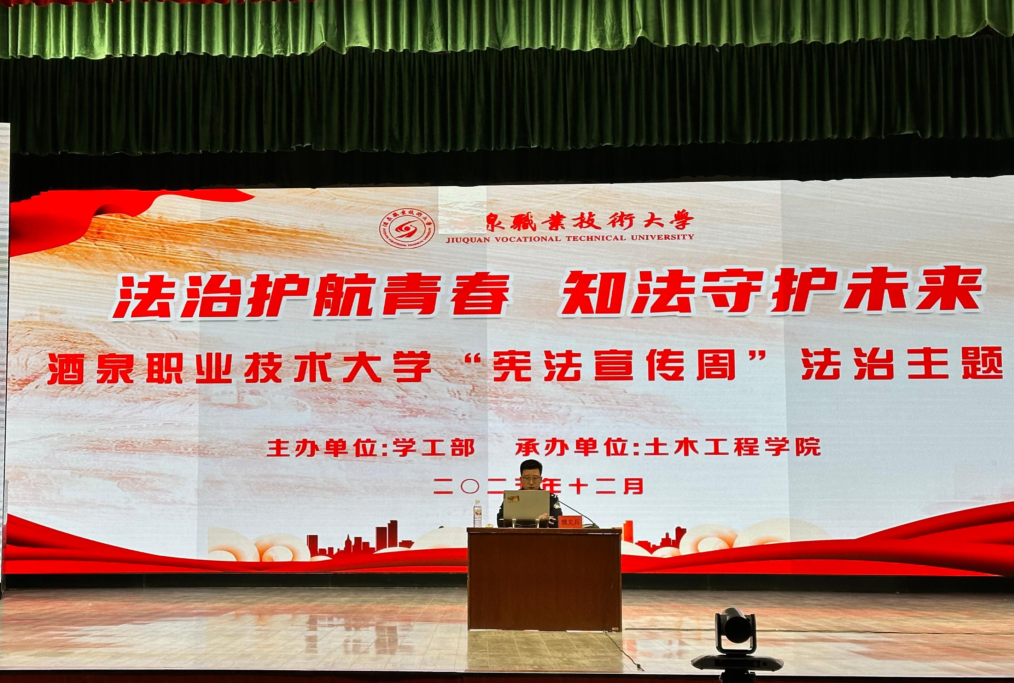 活动形式多样,注重理论联系实际。12月4日国家宪法日之际,学院特邀甘肃省酒泉监狱魏文兵警官,以线上线下相结合方式,主讲“法治护航青春 执法守护未来”宪法宣传周法治主题课。课程深入阐释了宪法作为国家根本法的权威地位、公民的基本权利与义务,并结合社会热点与学生身边案例,生动剖析了法治精神在现代社会治理中的核心作用。12月15日,学院组织学生代表前往法制宣传教育中心进行沉浸式实践学习。通过丰富的图文史料、真实的典型案例与先进的互动体验设备,同学们系统回顾了国家法治建设历程,深化了对宪法核心要义的理解。参观结束后,各班级围绕“宪法与职业未来”主题召开班会,组织诵读宪法条文,并结合土木工程行业涉及的合同、安全、质量、诚信等法律与伦理议题展开深入研讨。