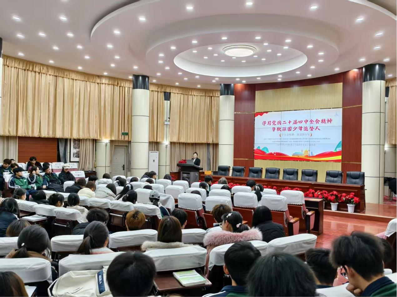 为深入学习宣传贯彻党的二十届四中全会精神,引导广大青年学生深刻领会全会重大意义、核心要义与实践要求,增强政治自觉、思想自觉与行动自觉,12月24日下午,生物工程学院在逸夫楼报告厅分批次组织开展“青马传声·全会领航——深入学习贯彻党的二十届四中全会精神”主题宣讲活动。学院学生骨干、2025级全体学生共计600余人分批次参加活动。