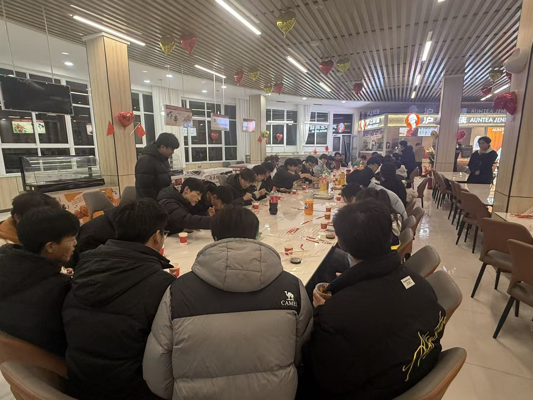各班精心策划、有序组织,活动形式多样、内容丰富。教室内文艺联欢精彩纷呈,歌曲、舞蹈、器乐、小品相声等才艺展示洋溢着青春活力;你画我猜、知识竞答与各类桌游互动不断,笑声满堂;电竞项目“王者荣耀”则展现了同学们的多元兴趣与团队默契。体育馆与篮球场上,趣味运动与友谊赛热烈开展,建工、水利、道桥等专业学子在拼搏协作中彰显昂扬风貌。祁连餐厅二楼与烹饪实训中心更是一派温馨,同学们亲手和面、擀皮、包饺,在劳动中共话新年期盼,也让离家学子感受到“家”的温暖。活动中师生亲切互动,同台表演、并肩游戏,现场其乐融融,师生情谊与班级向心力悄然升华。