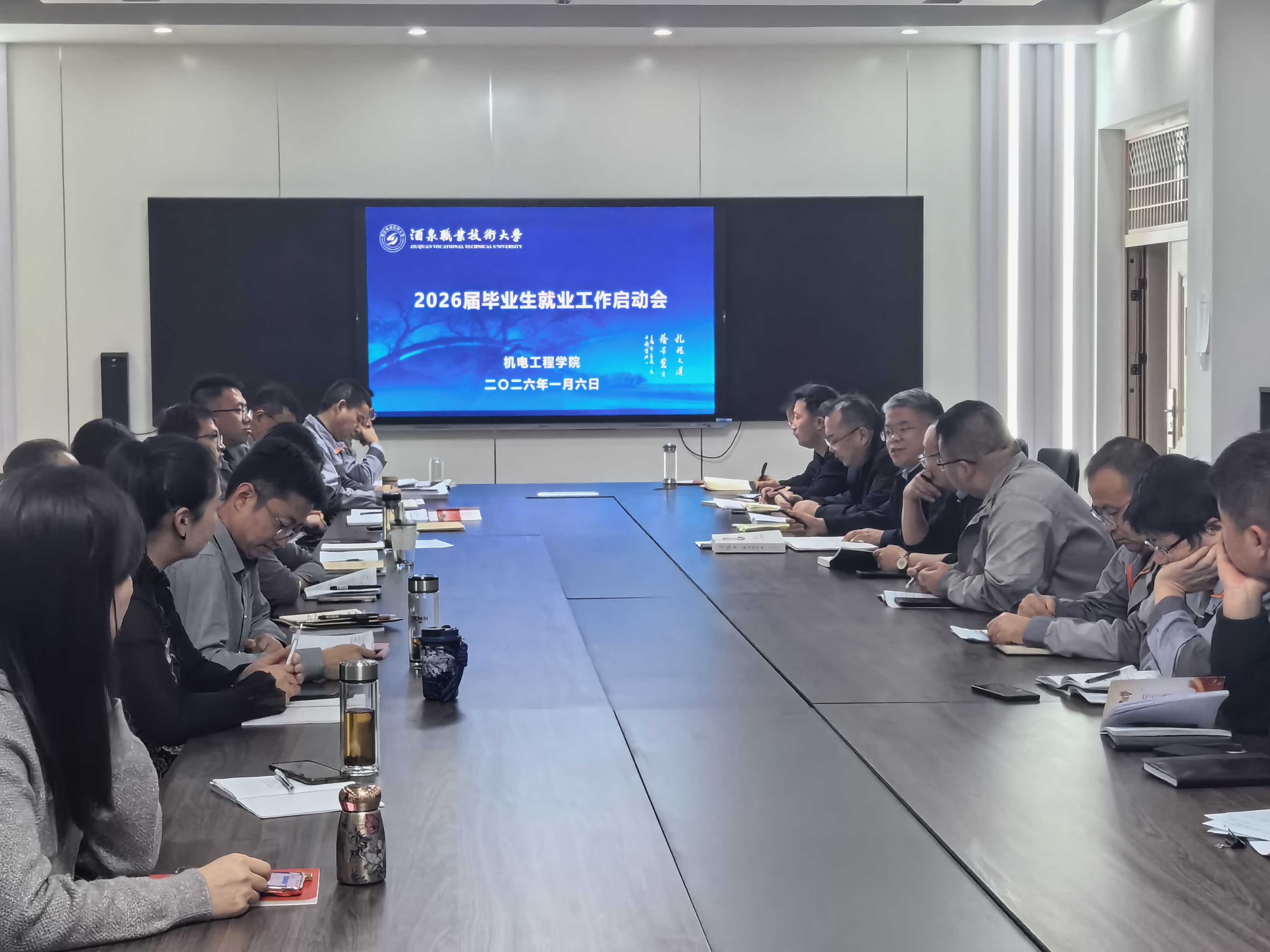 院系动态 > 正文为深入贯彻落实省教育厅及学校关于2026届高校毕业生就业创业工作的决策部署,提前谋划、系统推进学院毕业生就业工作,1月6日,机电工程学院召开2026届毕业生就业工作启动会,全体教职工参加会议,全面部署2026年就业工作任务。