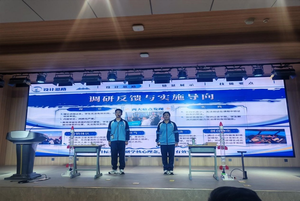 决赛现场,各参赛团队通过PPT讲解、模拟授课、课程手册展示等形式,全方位呈现了航天主题研学课程设计方案。作品涵盖“航天精神传承”“卫星发射原理探究”“水火箭创意制作”“航天科技与未来城市”等多个主题,目标学段从小学到初中不等,体现了较强的专业性和创新性。获得一等奖的“飞天漫舞映神舟”团队设计了一套沉浸式研学课程,将参观酒泉卫星发射基地、演示摩斯密码、敦煌飞天舞有机结合。