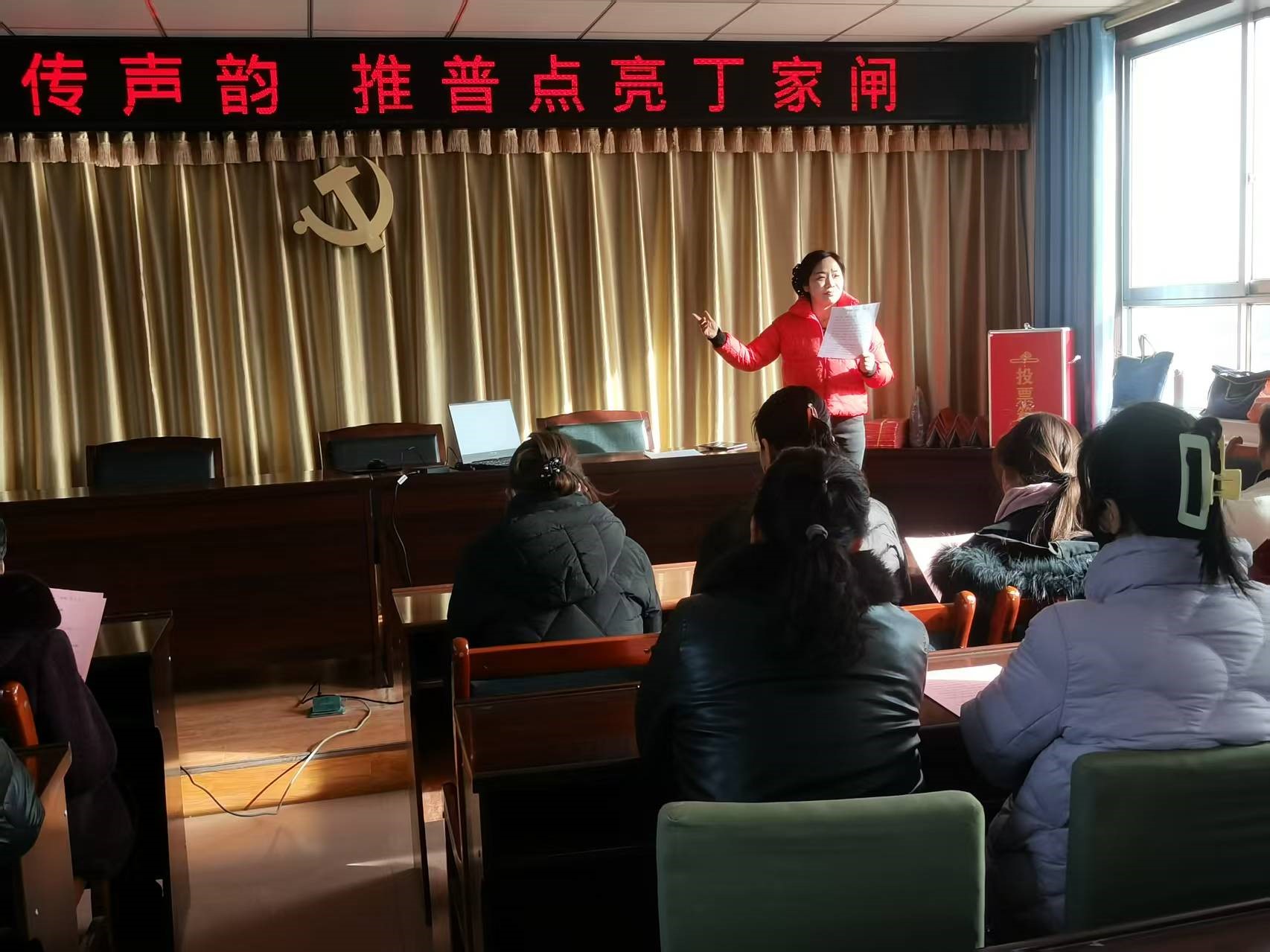活动伊始,社区指导服务中心主任、省级普通话测试员王晓梅以 “普通话赋能乡村振兴” 为主题展开授课。她结合丁家闸村农业生产、农产品销售等实际需求,用通俗的语言解析国家通用语言文字的核心价值:“学好普通话,不仅能帮大家精准理解惠农政策、顺畅对接农业技术指导,更能在电商直播卖特产、接待乡村游客时打破沟通壁垒,让‘土宝贝’走出乡村、走向更大市场。”