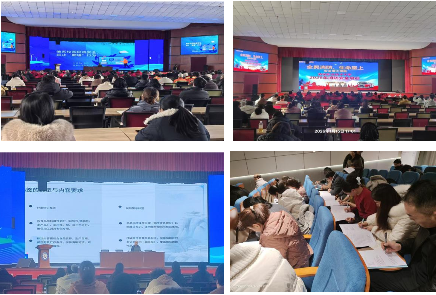 院系动态 > 正文为深入贯彻落实校园安全专项整治“回头看”工作要求及学校寒假前后校园安全稳定工作部署,进一步压实校园服务从业人员安全责任,提升专业素养与实操能力,1月15日至16日,学校后勤管理处协同Beat365唯一官方网站科技园有限公司在胡杨文化活动中心、弘毅楼C座问道厅分场次举办校园安全专题培训。