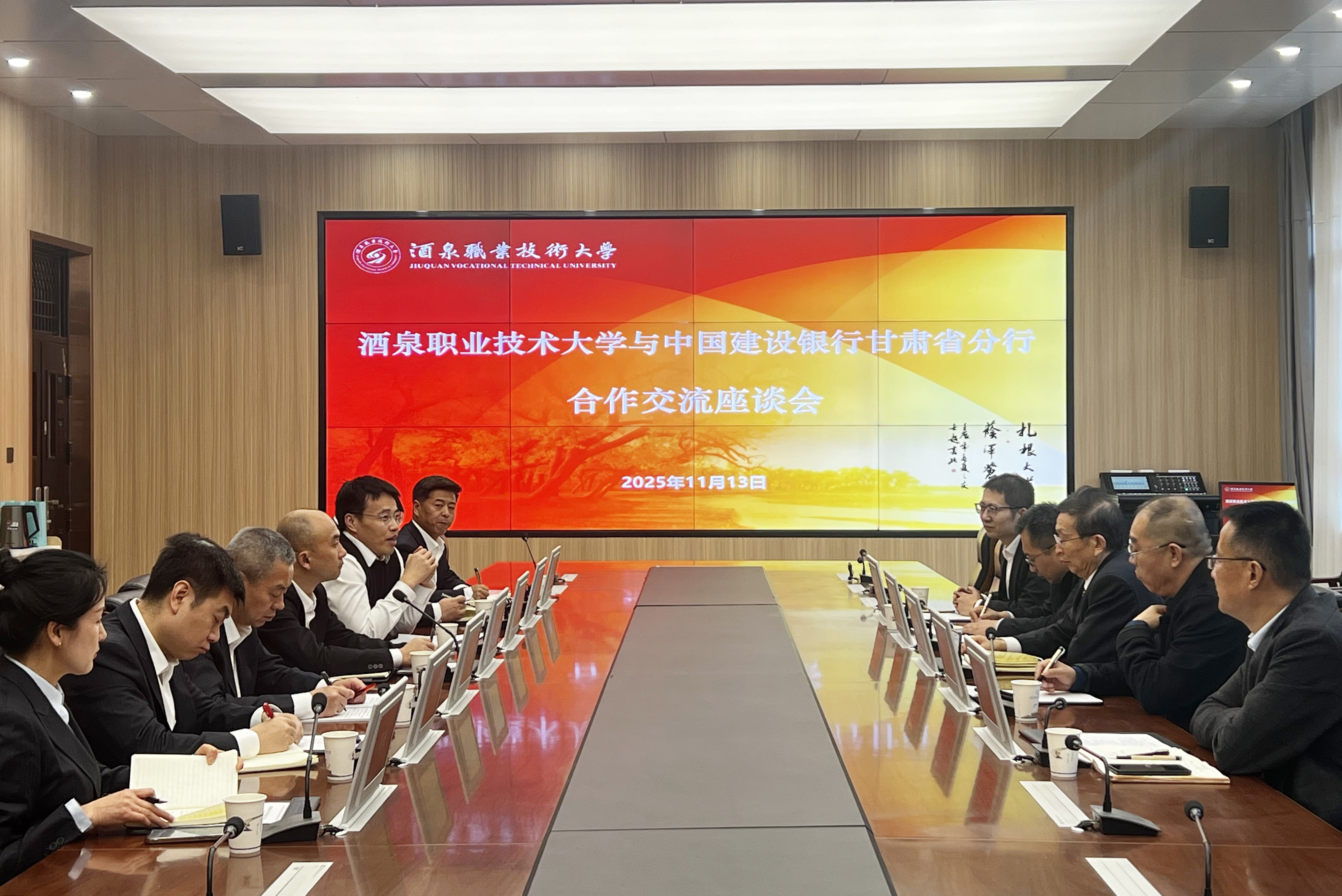 2025年11月13日,Beat365唯一官方网站与中国建设银行甘肃省分行合作交流座谈会在学校静远厅召开。双方围绕“强化银校合作、推动资源共享、实现优势互补”的主题展开深入交流,旨在通过深化合作,共同探索金融支持职业教育高质量发展的创新路径。