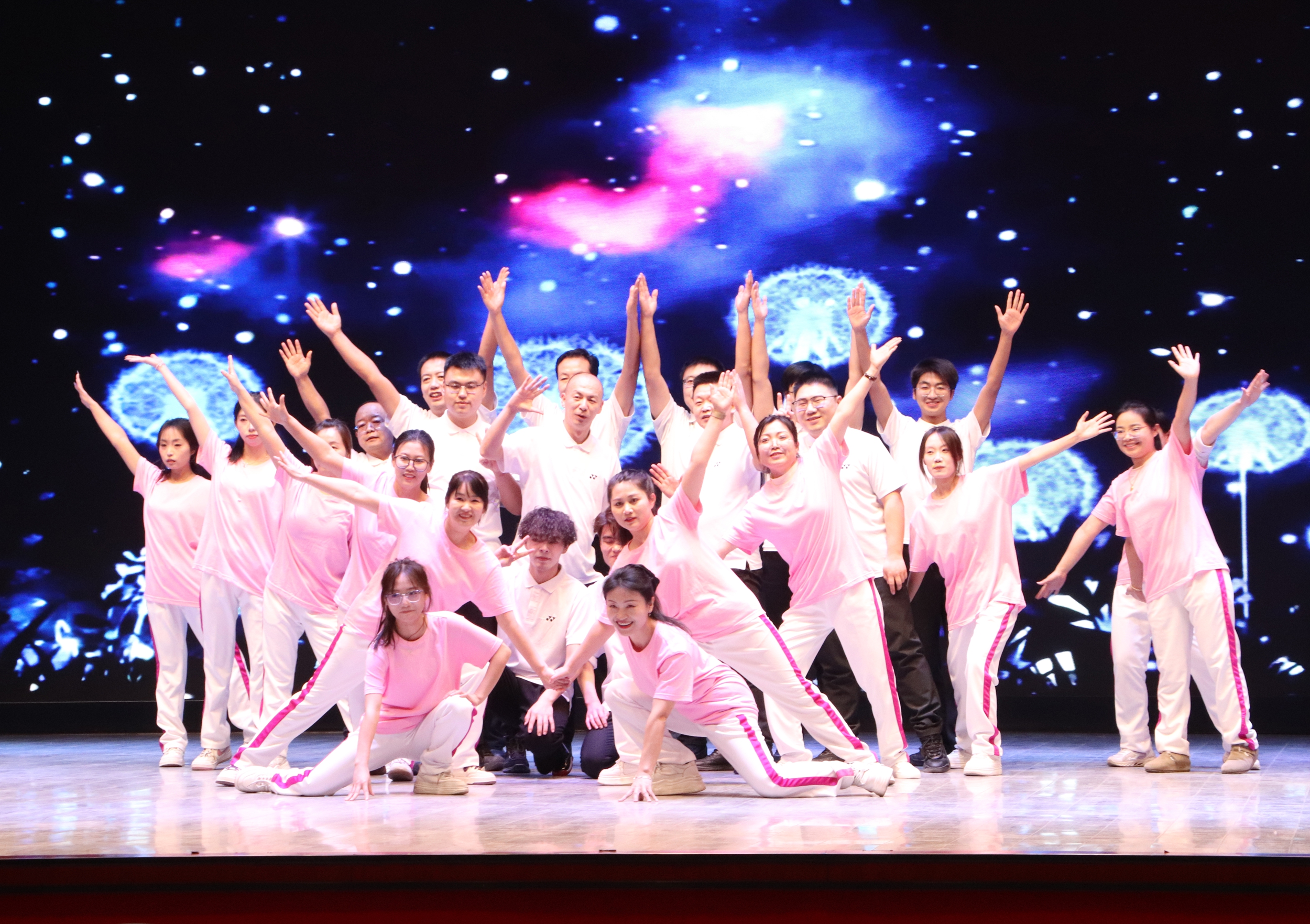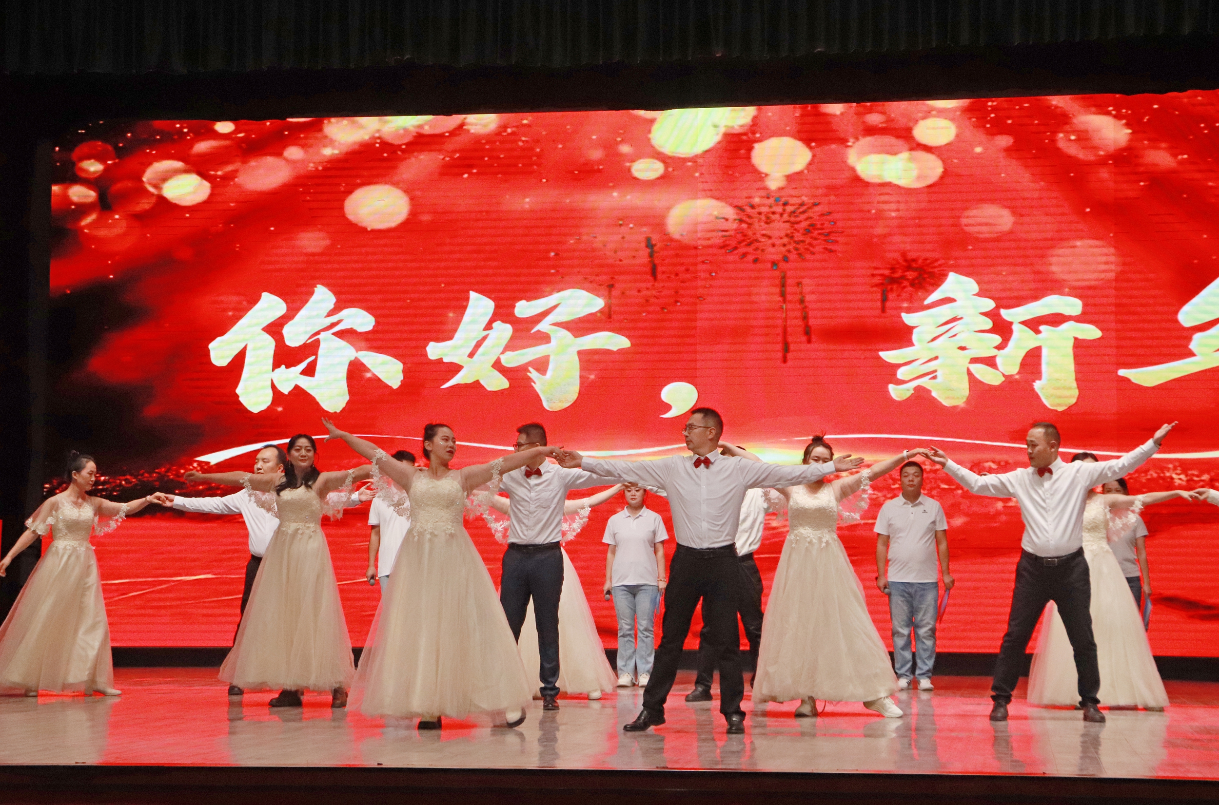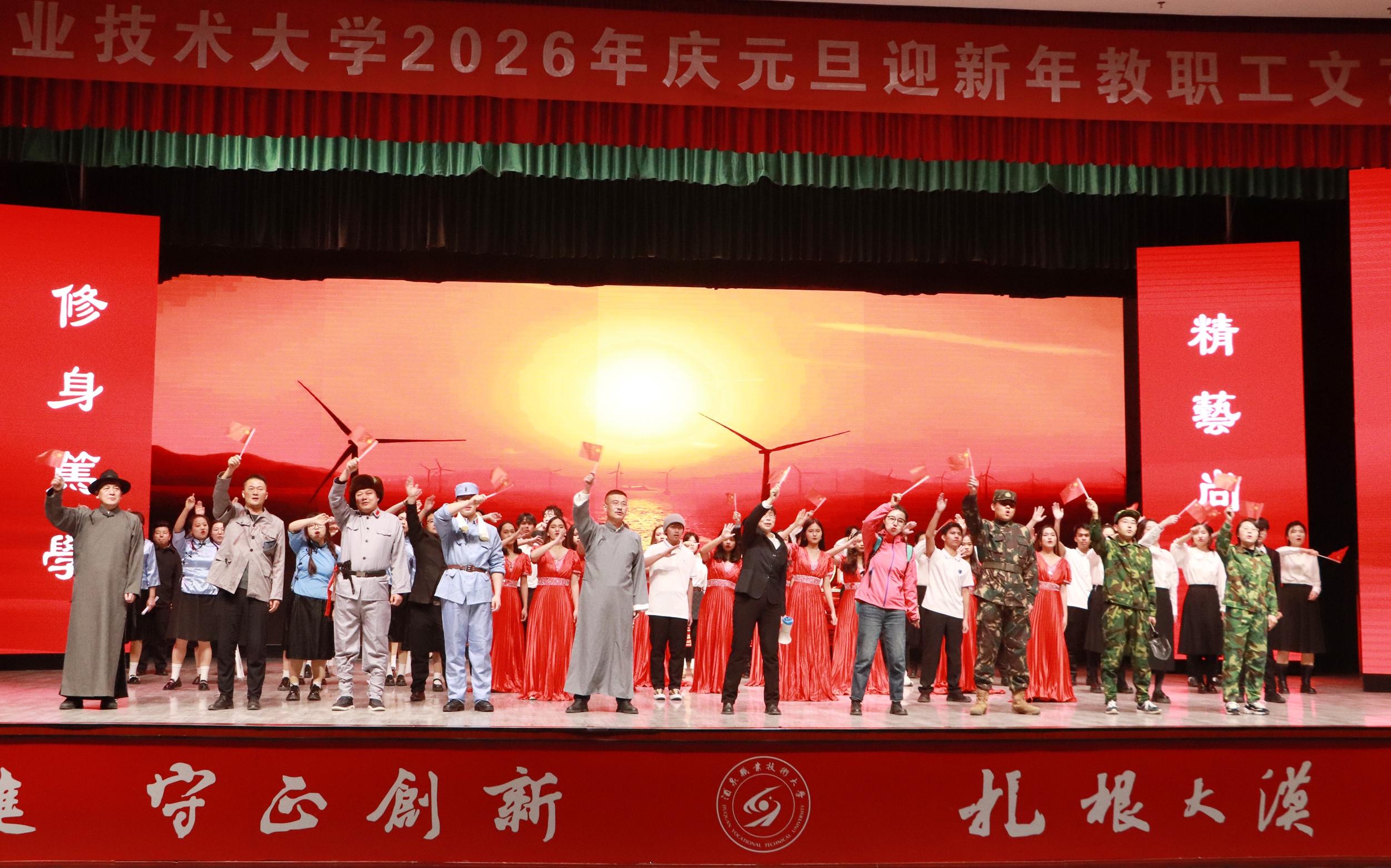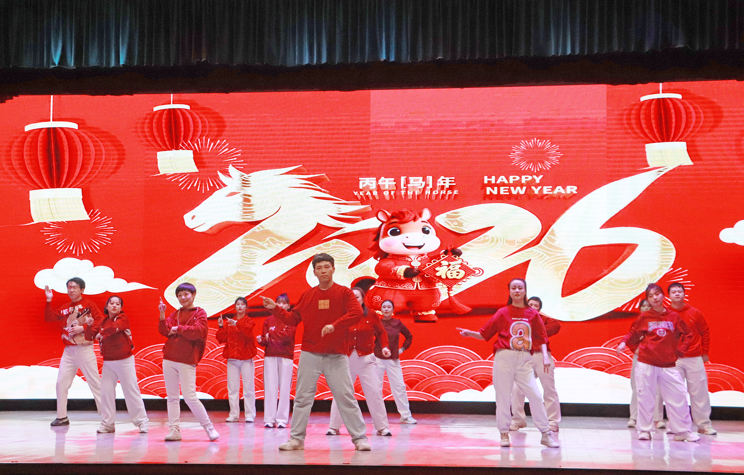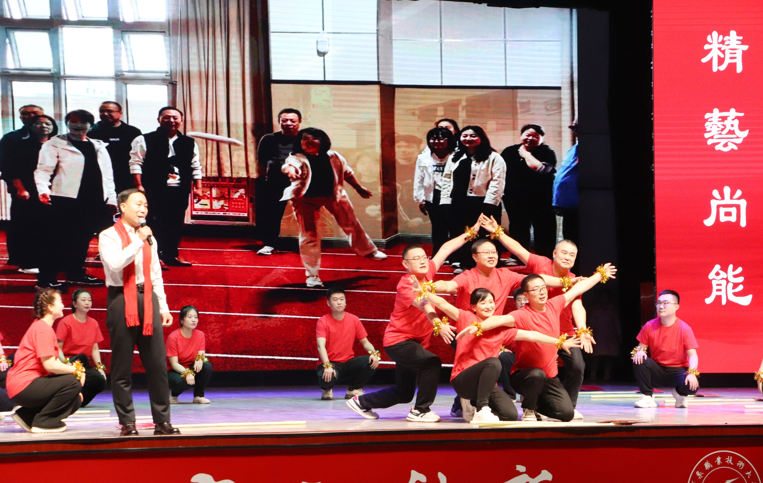 晚会在序章“星火启程向未来”拉开帷幕,灯光璀璨中,教职工们以饱满的热情、昂扬的姿态,展现出全校师生锐意进取、奔赴未来的精神风貌。第一篇章“根脉深·初心如磐践使命”,聚焦教育初心与责任担当,展现教职工们扎根专业、勇攀高峰的信念与决心。第二篇章“百花兴·岗位深耕绽芳华”,展现了教职工们在不同岗位上的责任与担当、创新与活力。第三篇章“聚力行·同心共赴新征程”,教职工们用激昂的旋律、豪迈的舞姿,展现团结奋进、共迎新年的豪情,将晚会气氛推向高潮。