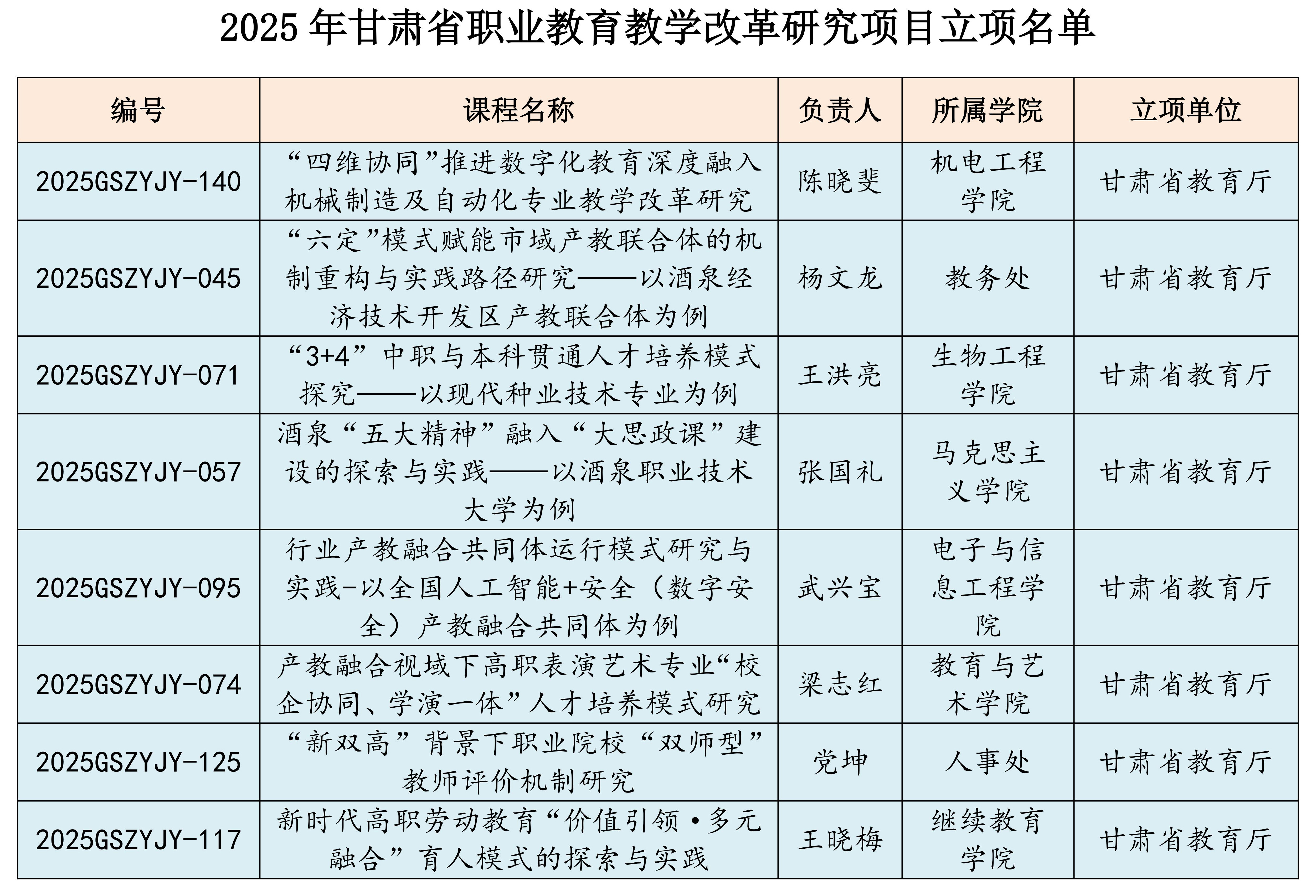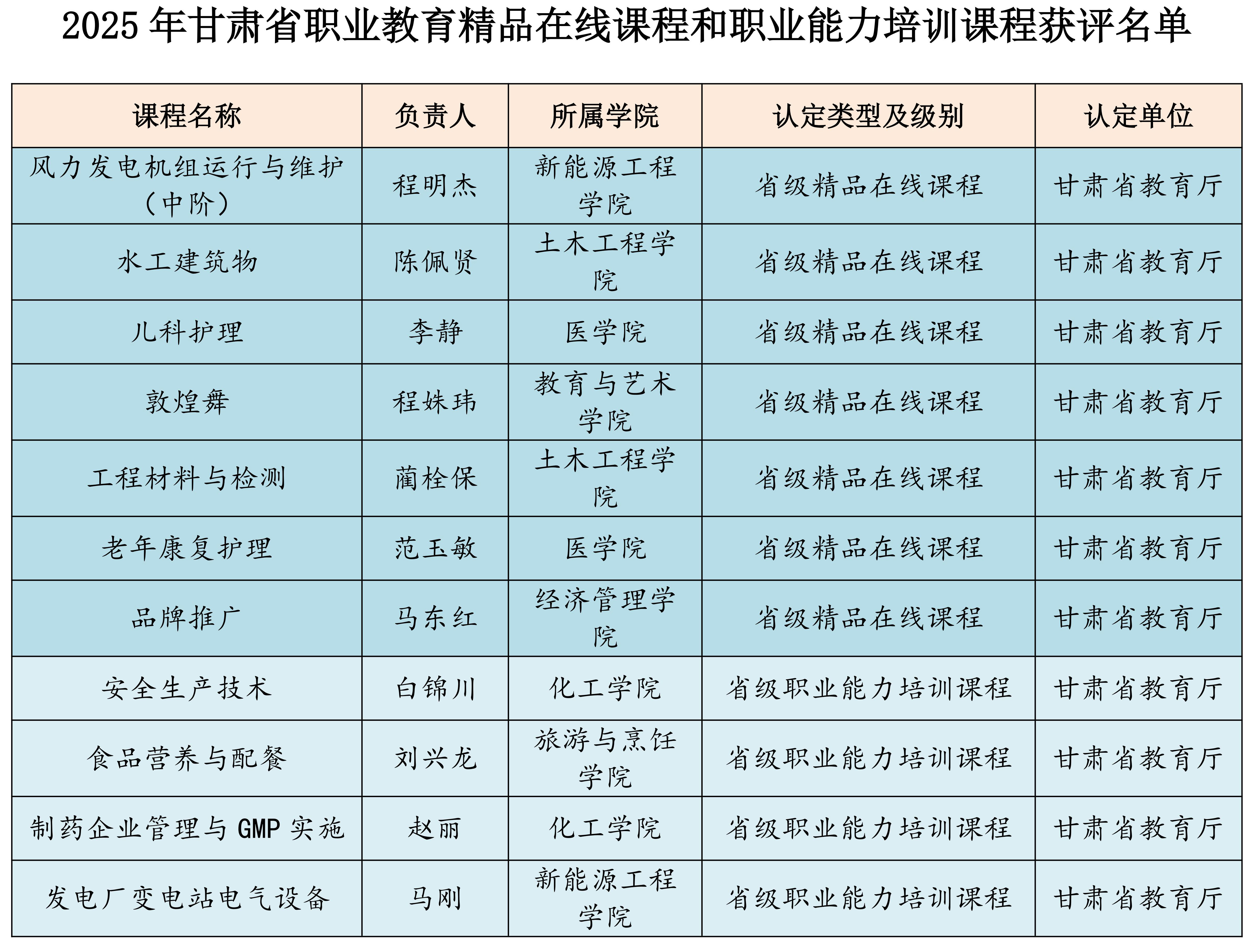 学校以精品在线课程与教学改革项目为抓手,持续推动课堂教学创新。《风力发电机组运行与维护(中阶)》等7门课程获评2025年甘肃省职业教育精品在线课程,《发电厂变电站电气设备》等4门课程获评2025年甘肃省职业能力培训课程,获评总数在全省同类院校中并列第一。教学改革研究同步深化,成功立项甘肃省职业教育教学改革研究项目8项,培育各级教育教学成果15项,为培育国家级标志性成果蓄积强劲动能。